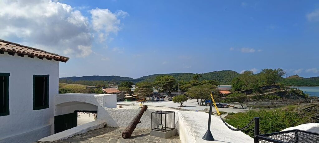 O cenário é completado pelo histórico Forte São Mateus, construído no século XVII, que oferece uma vista privilegiada do litoral e um toque cultural à paisagem.